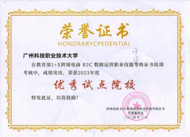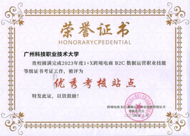 为贯彻落实《国家职业教育改革实施方案》关于在职业院校、应用型本科高校启动“学历证书+若干职业技能等级证书”制度试点工作,我校积极组织学生参加“1+X”职业技能等级证书培训和考级认证工作,成绩突出,分别荣获2023年度教育部“1+X”跨境电商B2C 数据运营职业技能等级证优秀试点院校和优秀考垓站点荣誉称号。