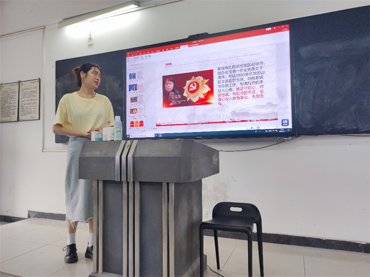 吴琳慧同志的分享主题是中国女性力量。主要从古今对女性力量的看法、女性榜样的展示以及最后如何弘扬女性力量来讲述。在古今女性力量对比中她讲到,中国古代封建社会时期女性地位极地低下,不受重视,但自从中国共产党带领我们国家走向不断前进的道路以来,女性地位有了质的飞跃,并且妇女儿童的保障权益也有了很大的提升。在分享女性榜样时,吴琳慧同志对华春莹、张京、张桂梅和孟晚舟几位代表人物的事例进行了具体阐述,进而将中国女性力量中“专业的力量,奉献的力量,信仰的力量”阐述给各位同志,使大家可以更好地理解中国女性力量的深刻内涵。在分享的最后,吴琳慧同志提到,希望各位同志在成长道路上要不断学习榜样精神,不要给自己设限,应该尽力去成为自己想成为的人,尽力去做自己想做的事。牢记全心全意为人民服务的宗旨,不忘初心,牢记使命。