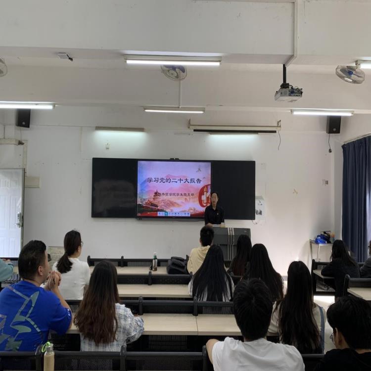 在最后,陈琪同志还给全体参会党员布置了一道思考题:作为青年党员,作为学习外语外贸的学生,我们能做些什么?这引发了同学们的思考和热烈讨论。