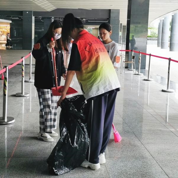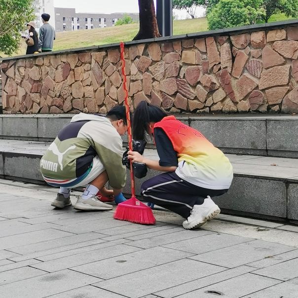 23日下午14点30分,支部书记陈琪同志在1206布置清扫任务,组织各位同学领取清扫工具。我支部主要负责图书馆架空层的清扫工作,有的打扫枯枝落叶,有的蹲到地上捡起地砖封中的烟头,有的从花坛里将烟头清扫出来,并提醒过往的学生不要乱扔烟头、垃圾。