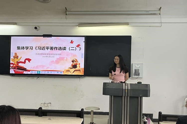 2023年5月12日下午两点半,外语外贸学院学生党支部组织全体党员通过线上和线下结合的方式学习《习近平著作选读》(第一卷、第二卷)。参与本次会议人员有外语外贸学院学生党支部书记陈琪同志、宣传委员郝瑞琦同志、组织委员凌晓萍同志等全体校内外党员。