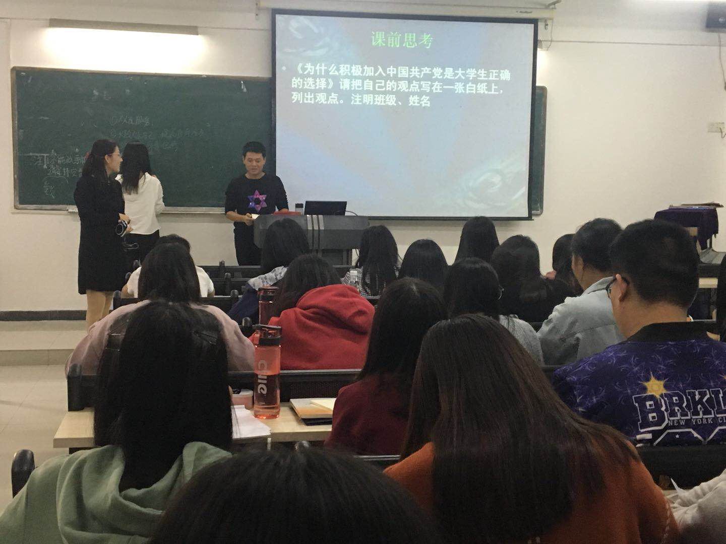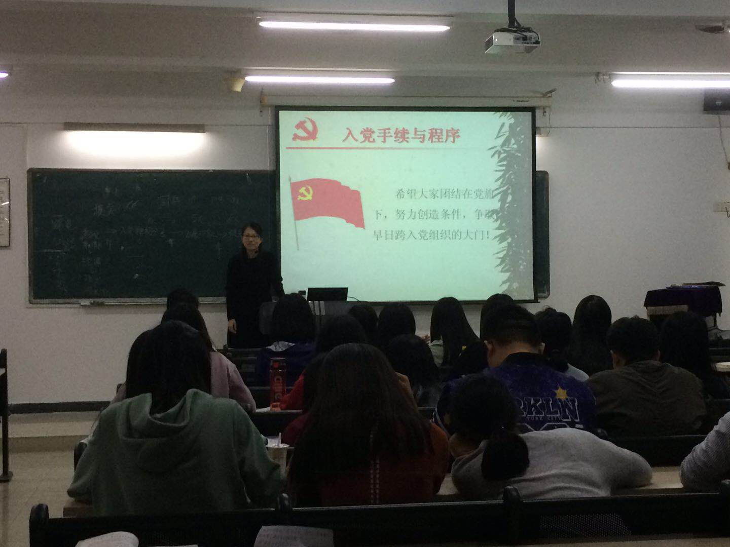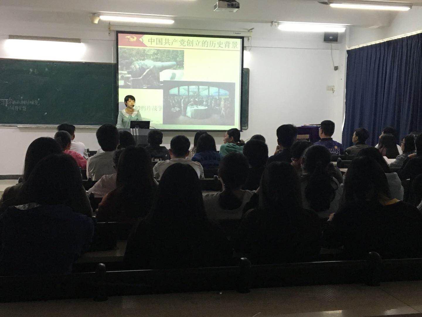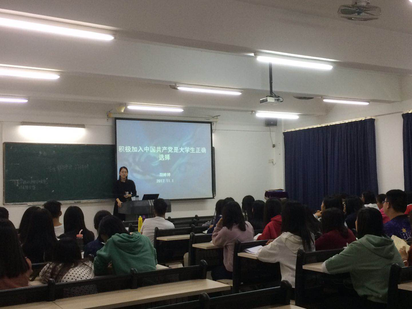 (图为符婷婷老师讲授积极加入中国共产党是大学生的正确选择)