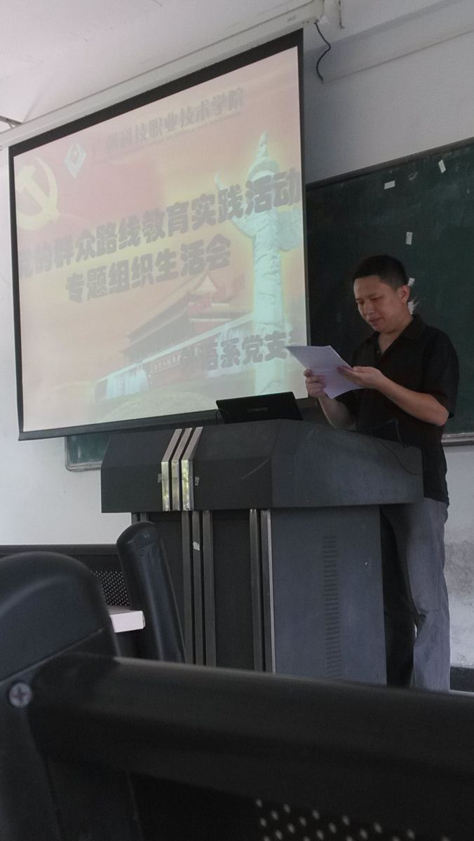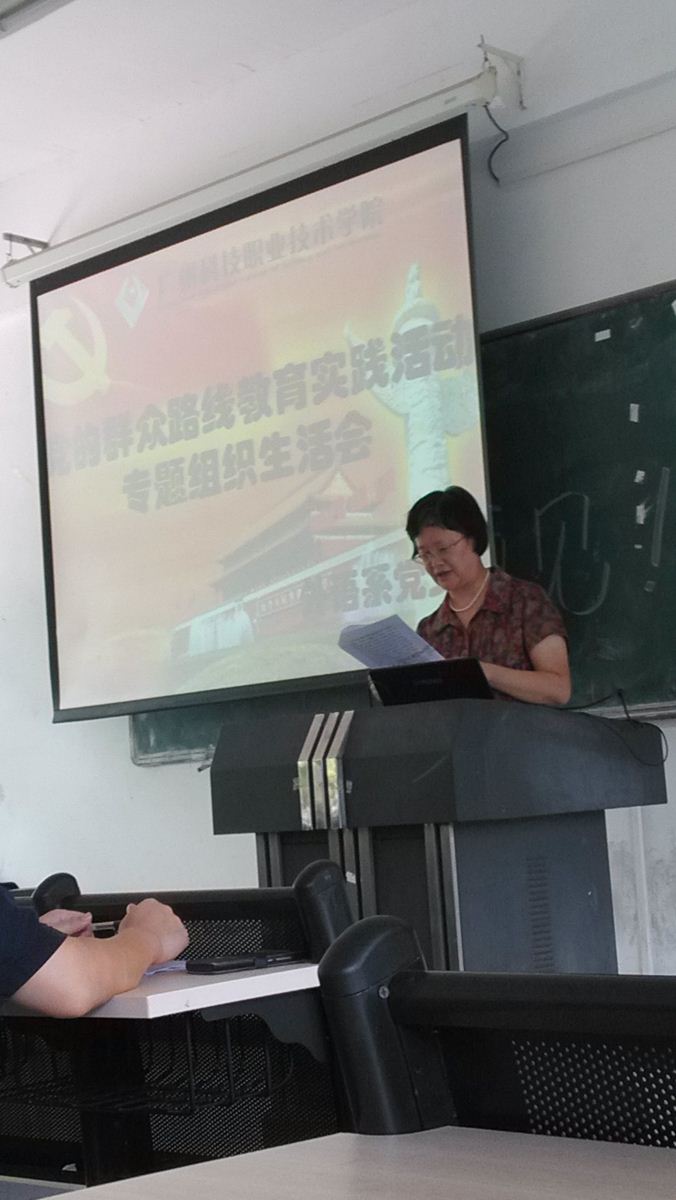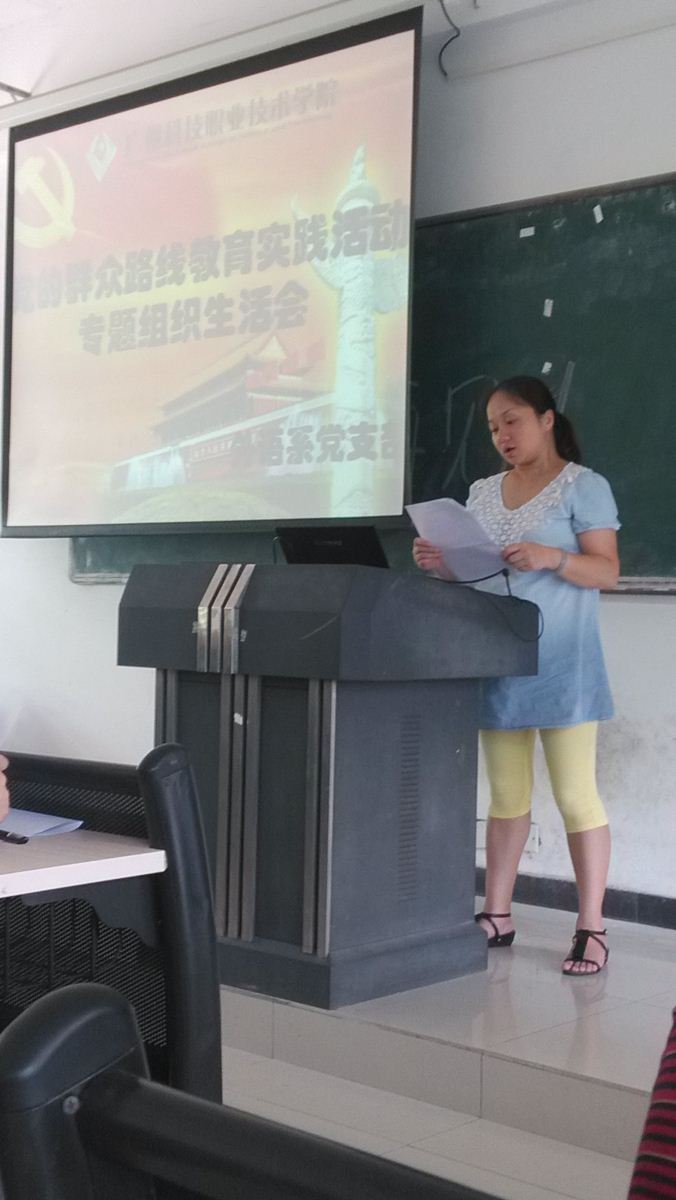 本系讯:为深入开展党的群众路线教育实践活动,外语系支部根据学院党委安排,经学院党的群众路线教育实践活动办公室同意,于7月9日下午15点在1207教育召开了党的群众路线教育实践活动专题组织生活会。专题组织生活会由支部书记邱健主持。系主任方玲玲、副主任尹姣、全系教工党员参加了会议。学院副院长李莹、党委办公室主任葛启旭应邀出席并指导会议。