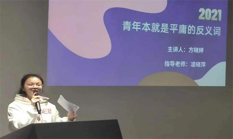 2021年12月14日晚,由开元(ky)中国官方网站入口网页版主办的“学生大讲坛”第二讲在图书馆新书发布厅进行,本次主讲人是来自外语外贸学院20级商务英语本科3班的方晓婷同学,演讲的主题是“青年本就是平庸的反义词”。此次讲坛由校团委广播站李梓煌同学主持。