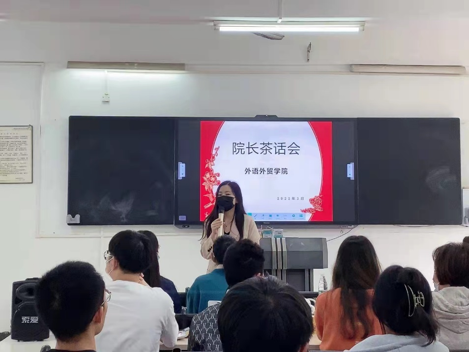 为及时了解我院学生的学习与生活情况,为同学们营造轻松愉快的学习和生活环境,进一步提高教学与管理水平,我院于3月30日下午在1204举办“院长茶话会”。我院应用英语本科专业学生班干部及学生代表参加了此次活动。学校教务处科长陈毓秀、外语外贸学院副院长杜艳红、廖丽玲,应用英语教研室主任张茂林,辅导员沈欧旎、黎晓玲参会。会议由副院长杜艳红主持。