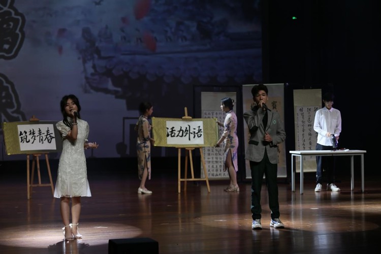 晚会舞台美轮美奂,表演形式多彩多样,有芭蕾独舞、英语独唱、英语影视配音、钢琴四手联弹演奏、模特表演、诗歌朗诵、书法表演等。柔美的舞蹈、炫丽的服装、优美的音乐…表演者活力四射,青春飞扬,师生观众沉浸其中。
