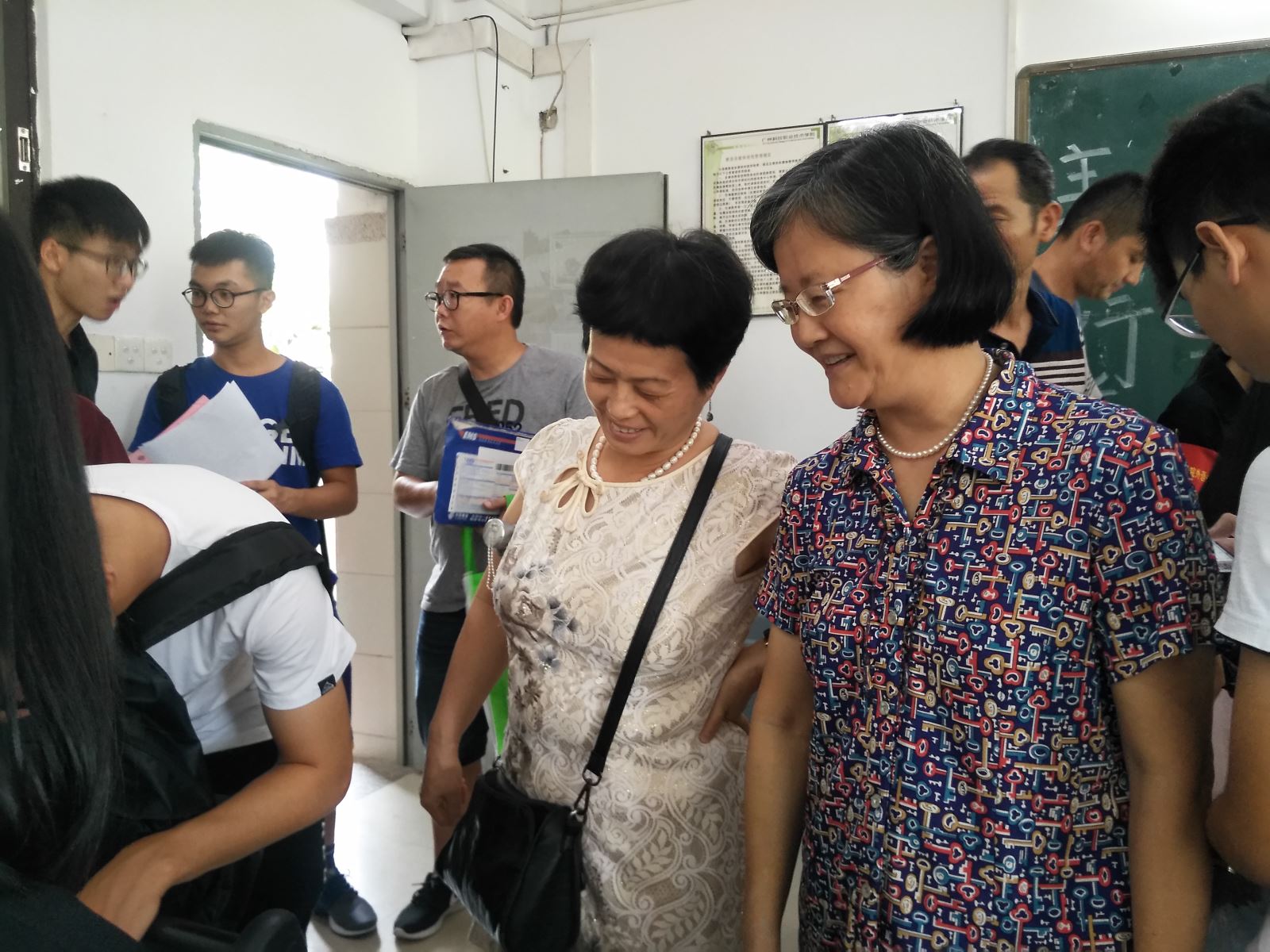 外语外贸学院院长方玲玲、党总支副书记刘良到迎新现场了角迎新工作情况