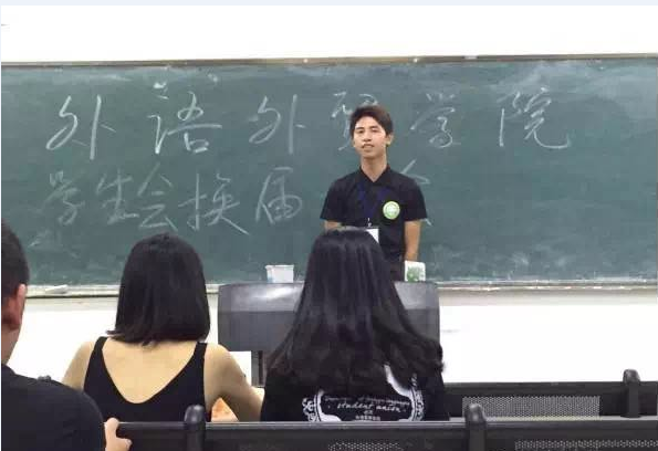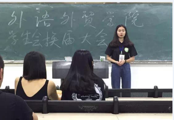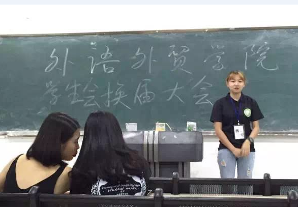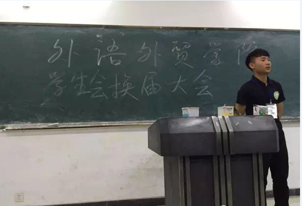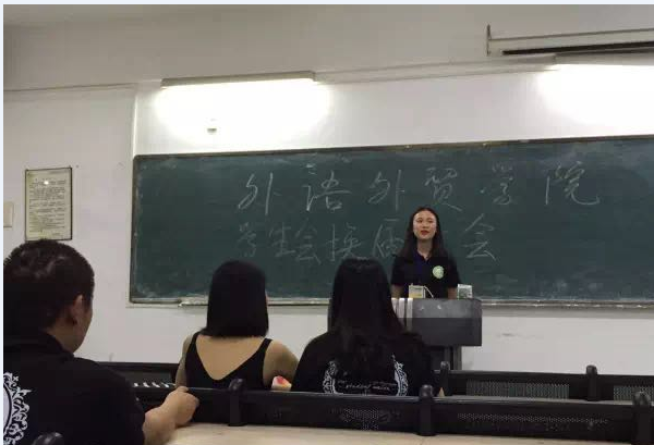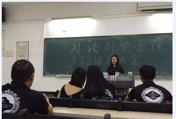 2016年5月23号晚上8点40分在1204课室进行外语外贸学院学生会换届大会。当晚有14届主席陈晓军,14届秘书长张桂玲,14届各部长和15主席黄子恒,副主席崔馨月,秘书长梁释文以及15届各部长到场。