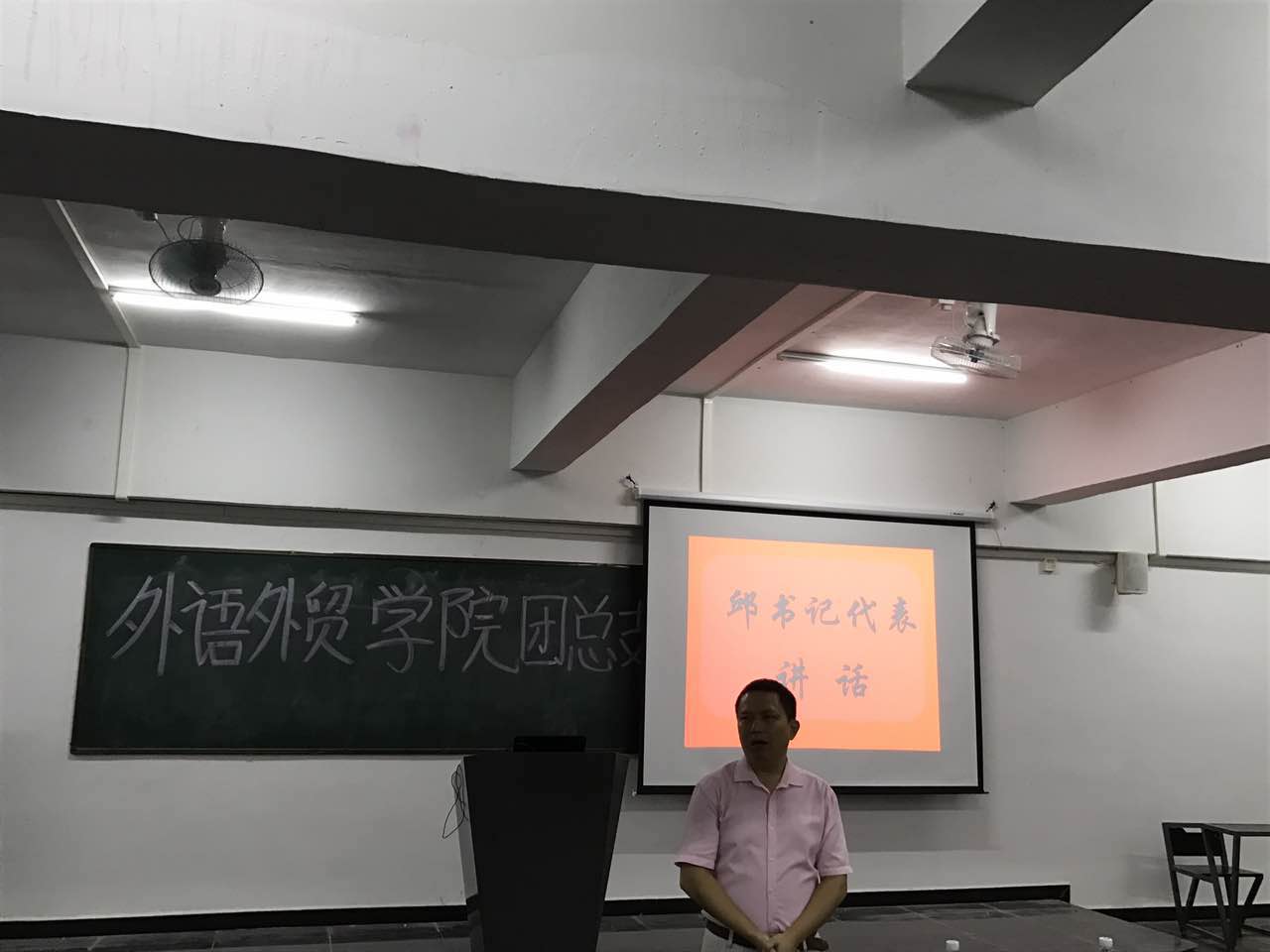 2016年10月20日晚上七点三十分,外语外贸学院团总支动员大会在3401课室召开。很荣幸邀请到党总支副书记邱健老师,管理学院团总支副书记莫宗霖、汽车工程学院团总支副书记魏宇锴、艺媒学院团总支副书记黄辉麟参加本次大会.