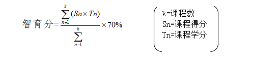 如:某学生课程A的得分为a,学分数为n1,课程B的得分为b,学分数为n2,该生的智育分为〔(a×n1+b×n2)/ (n1+ n2)〕×70%