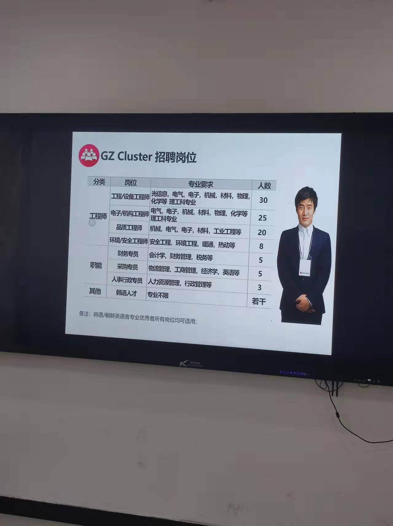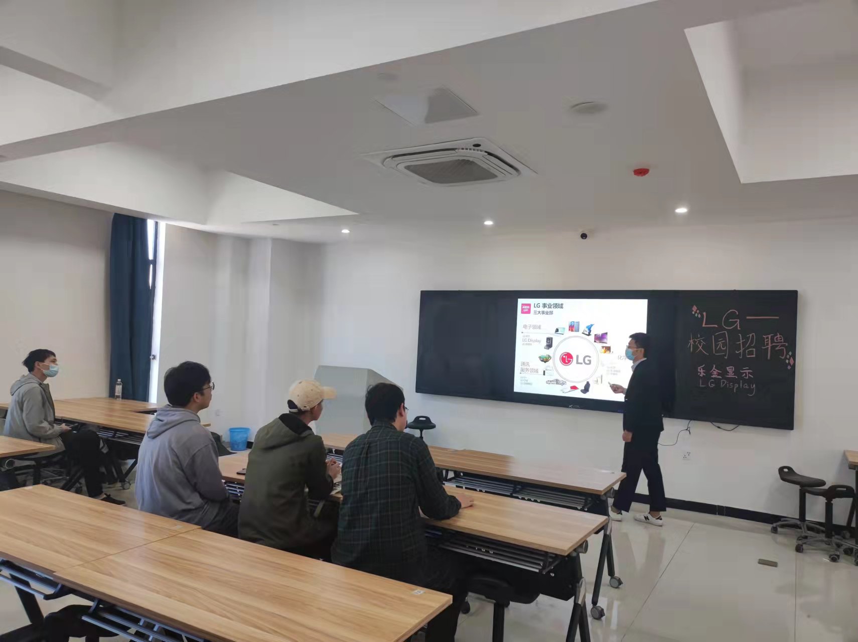 为切实做好我院实习就业工作,增加学生对实习就业的信心,并为学生争取更多的实习就业机会,我院于2021年11月24日邀请了LG Display举行专场招聘会。对于此次招聘会,我院领导高度重视,并对招聘宣讲精心组织安排,以确保招聘宣讲会顺利进行。