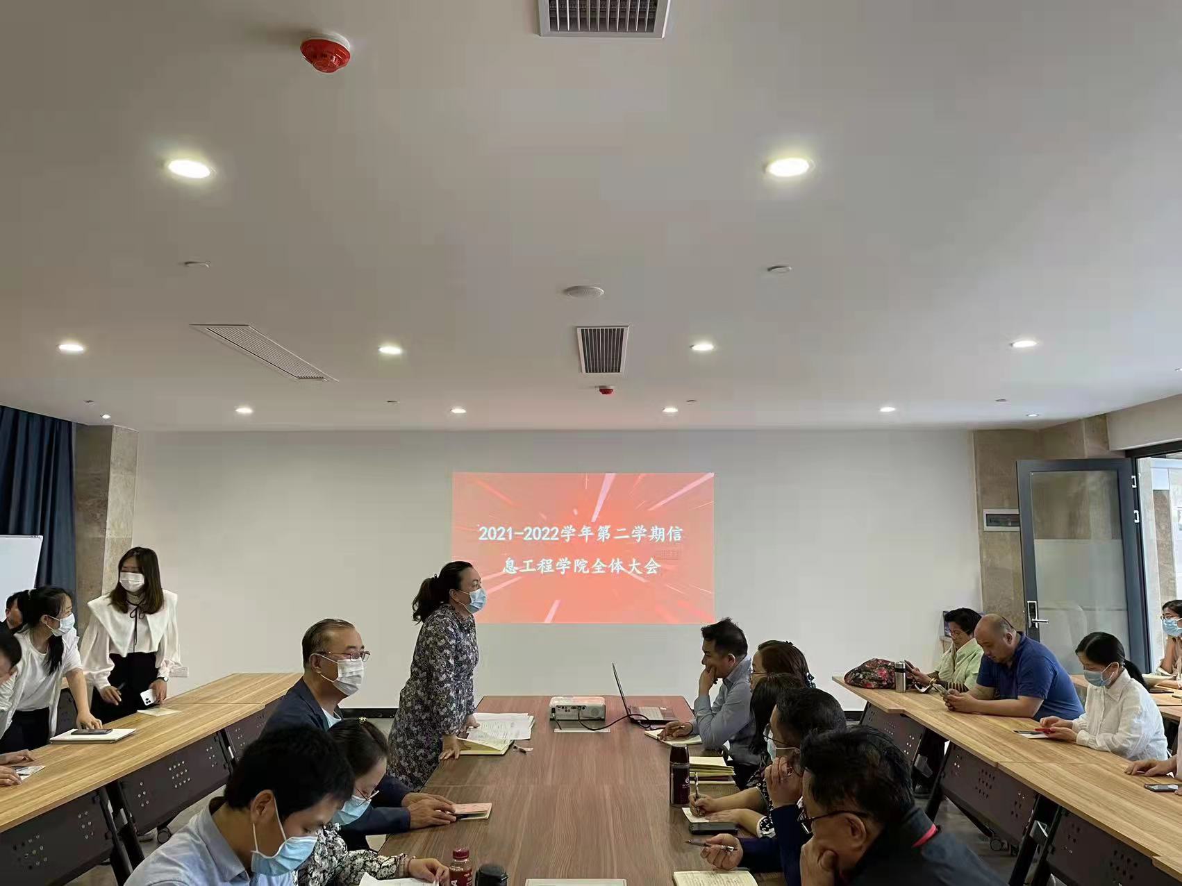 2022年3月16日,信息工程学院召开2021-2022学年第二学期学院全体大会,信息工程学院陈政石院长、兰娅勋副院长、肖琳书记以及我院全体教职工参加了本次会议。