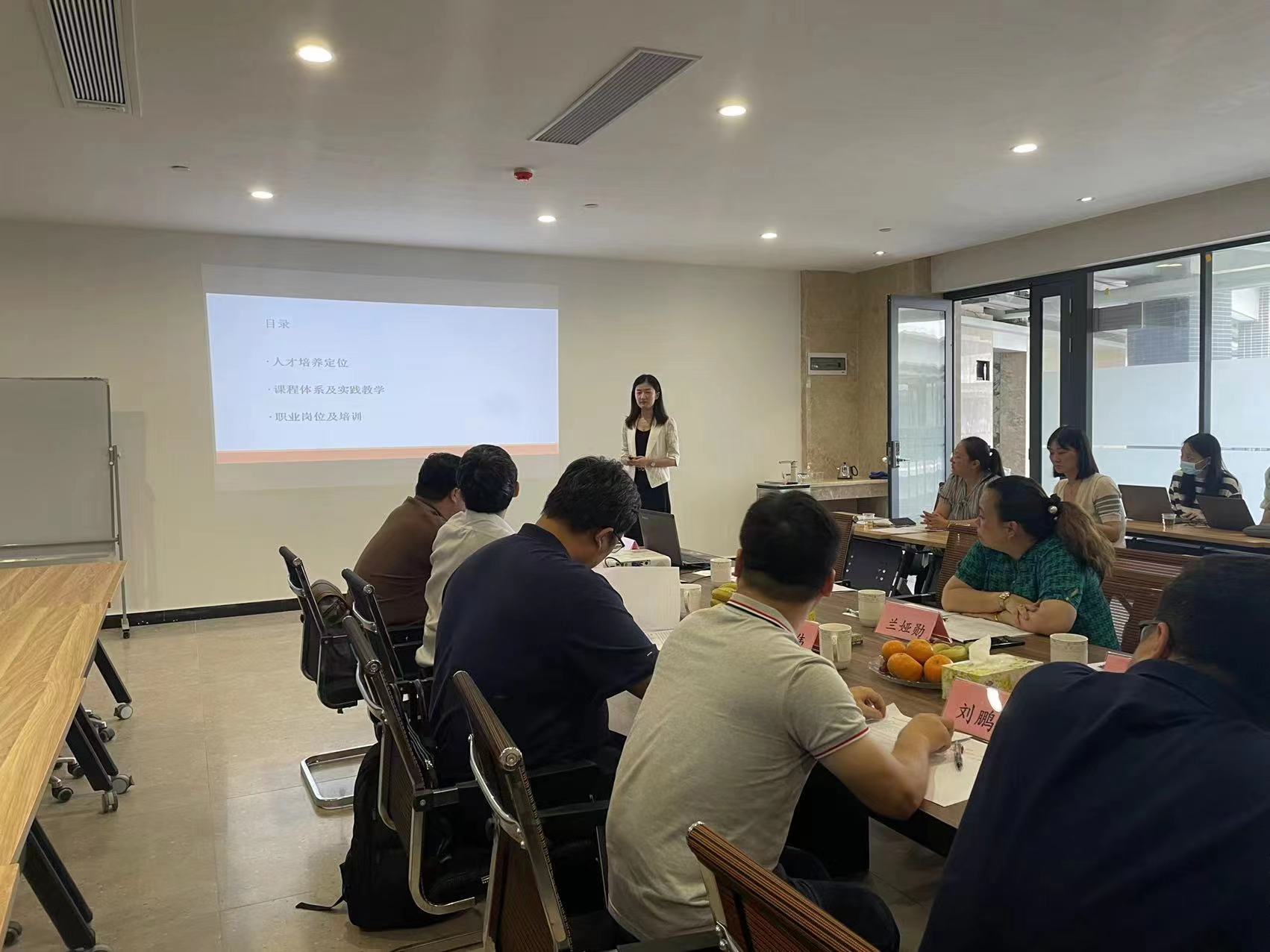 随后,计算机应用教研室的于老师介绍了职业教育本科计算机应用工程专业人才培养方案的详细内容。同时,于老师指出学校充分发挥办学优势和办学特色,立足助力构建现代职业教育体系,积极推动职普融通。在课程体系建设、人才培养模式改革、“双师型”教师队伍建设、产教融合校企合作等方面,着力促进职业教育与普通教育资源共享、理念借鉴。