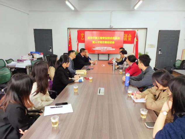 2024年3月13日14时,由广州市白云区印刷技术协会秘书长李磊与艺术传媒学院副院长肖宇霖共同牵头,组织广州市宝绅科技应用有限公司、广州天意有福科技股份有限公司、广州市艺彩印务有限公司、广州彩晴包装印刷有限公司、广...