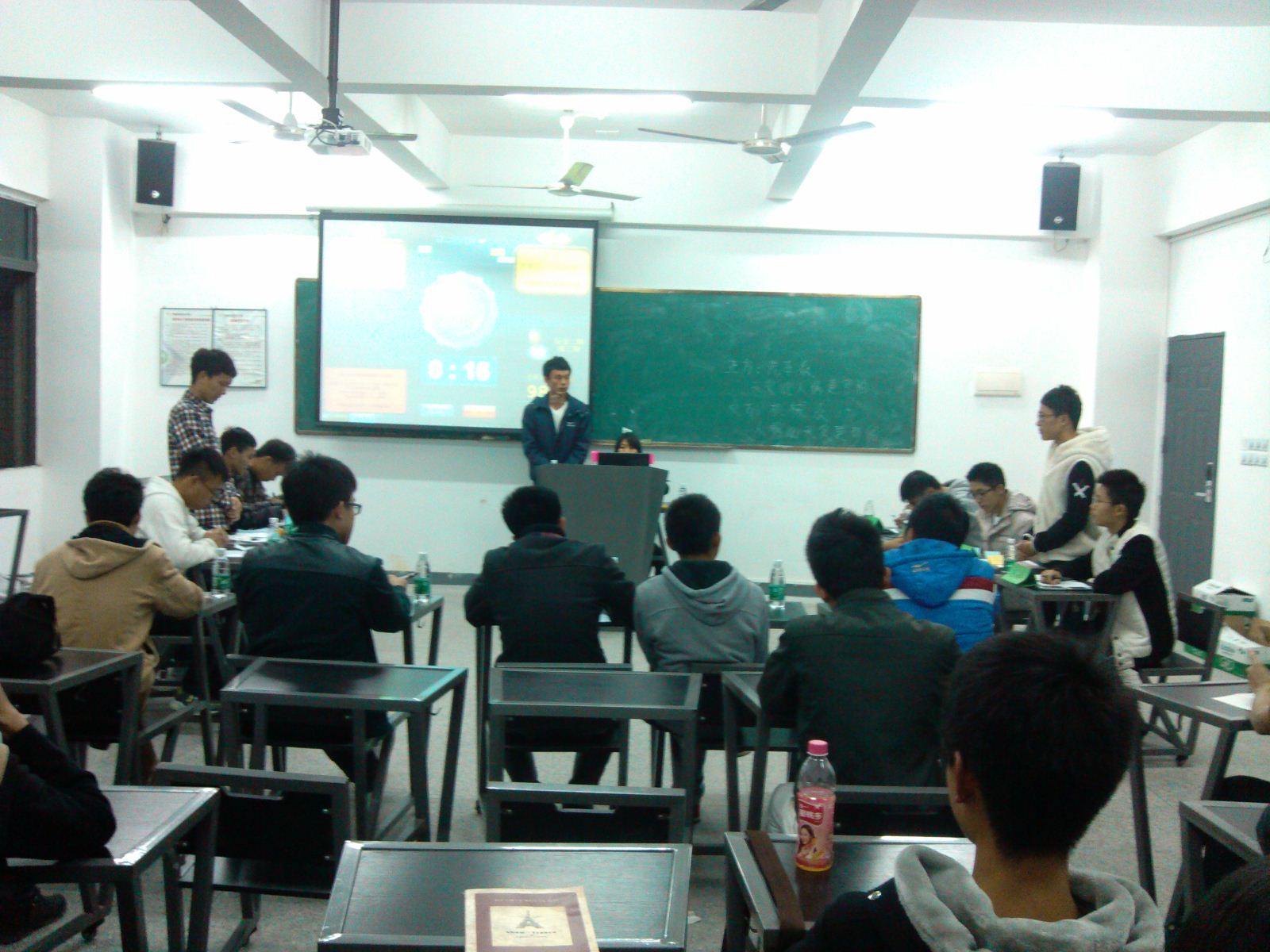 2013年12月12日晚,由我院一言辩论社举办的新生杯辩论比赛在4410课室如期举行,参加本场辩论赛的双方代表分别为正方汽修系学子与反方我系学子代表队。