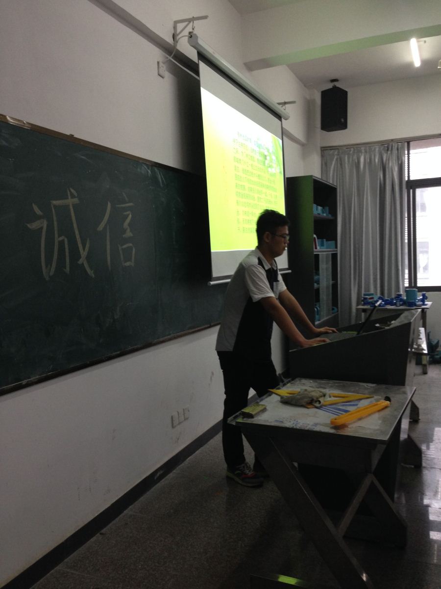 (图三:模具1501班团支书发表“诚信”主题演讲)