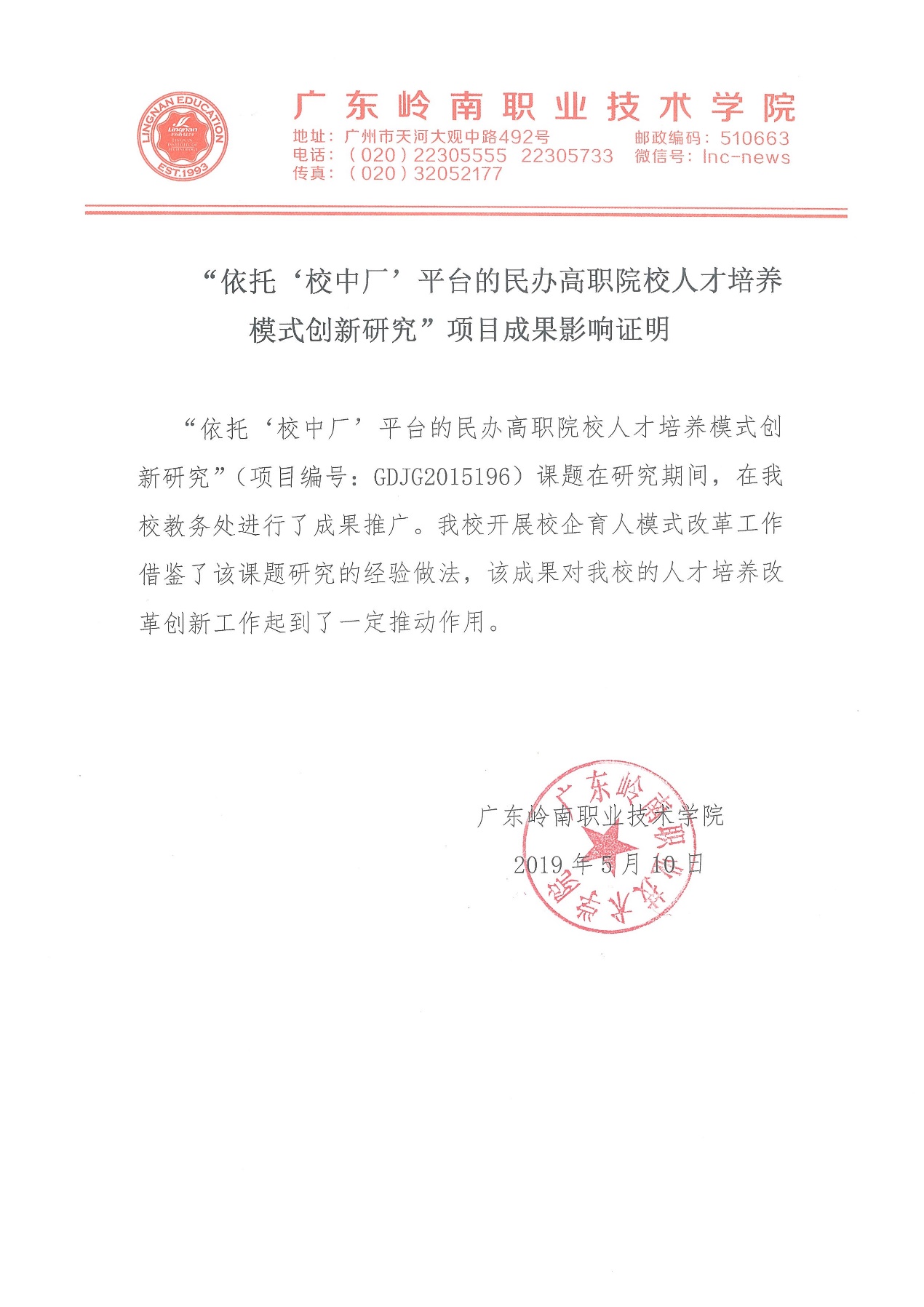 项目类别:教育教学改革研究与实践项目 项目负责人:廖细春