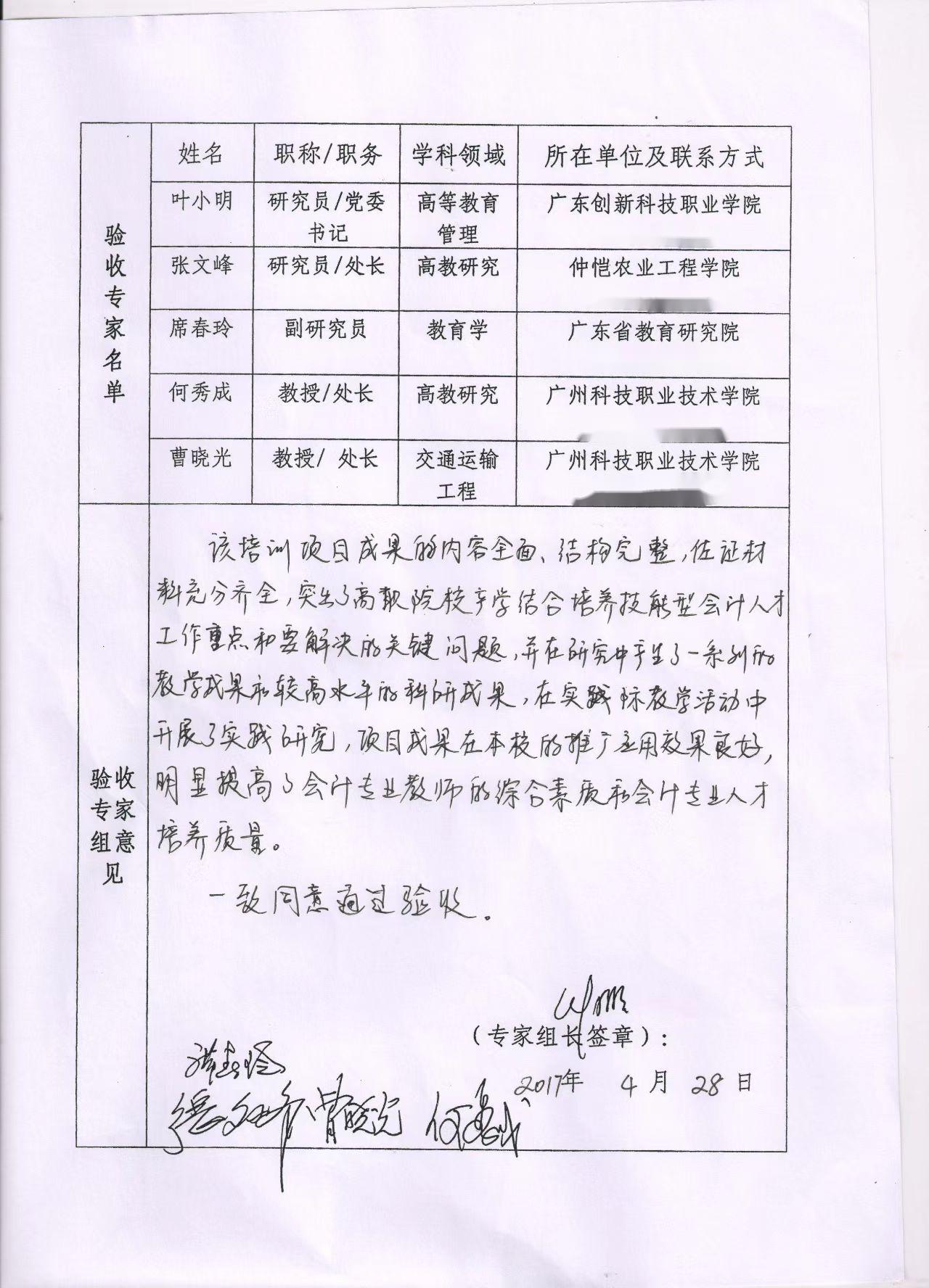 验收专家组意见